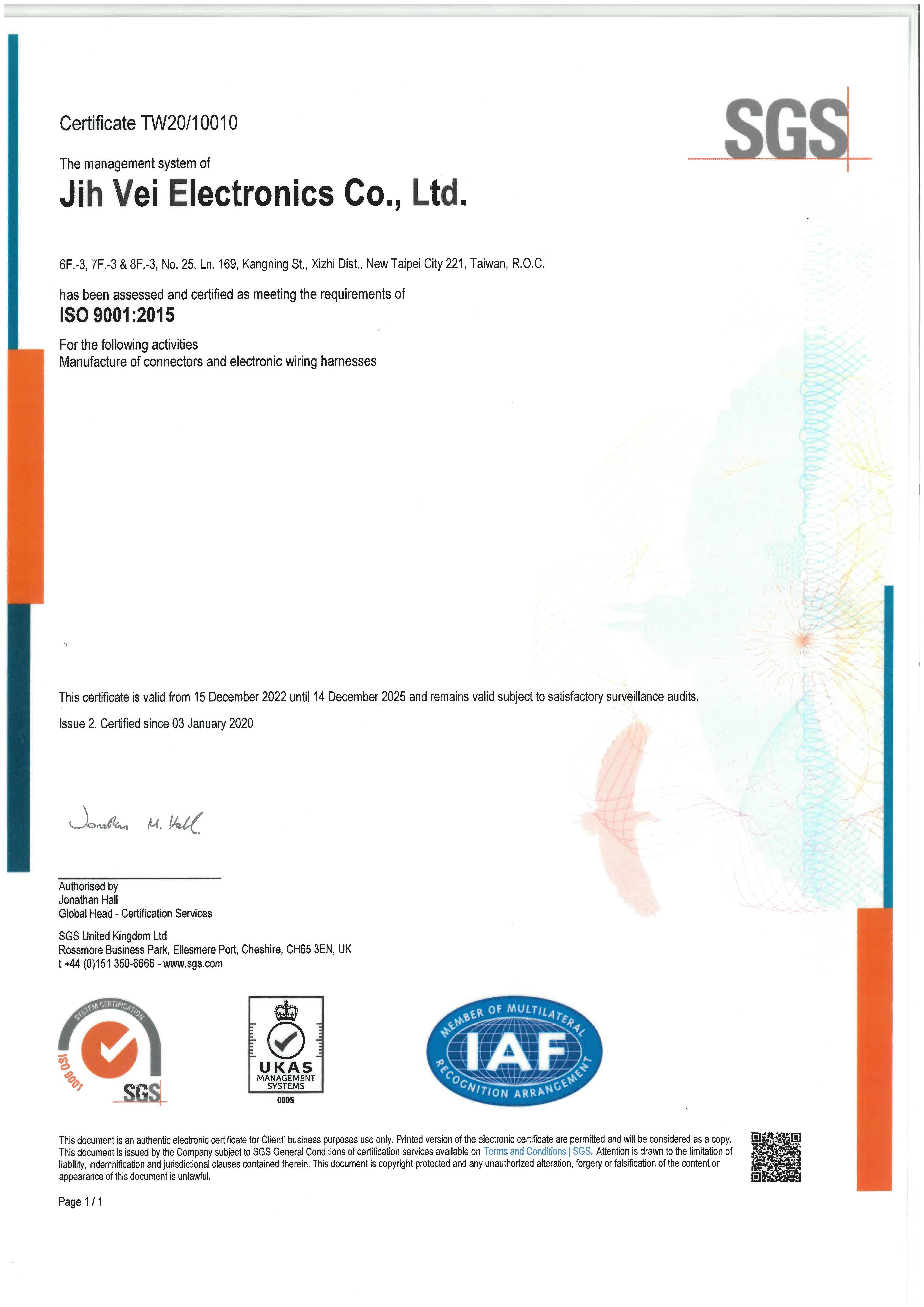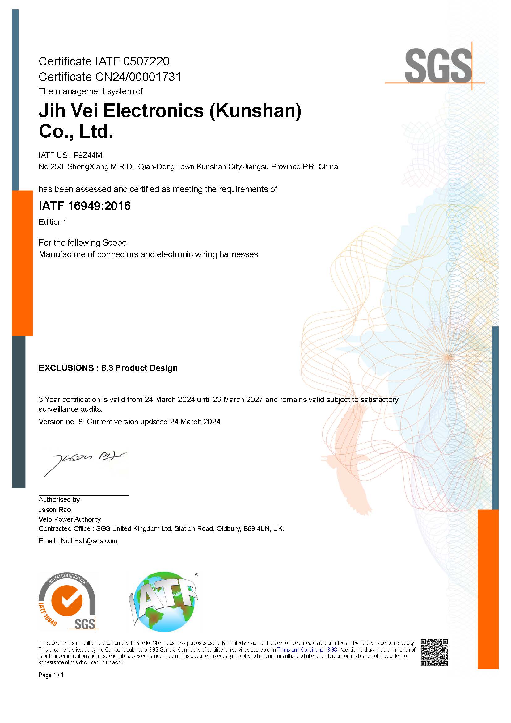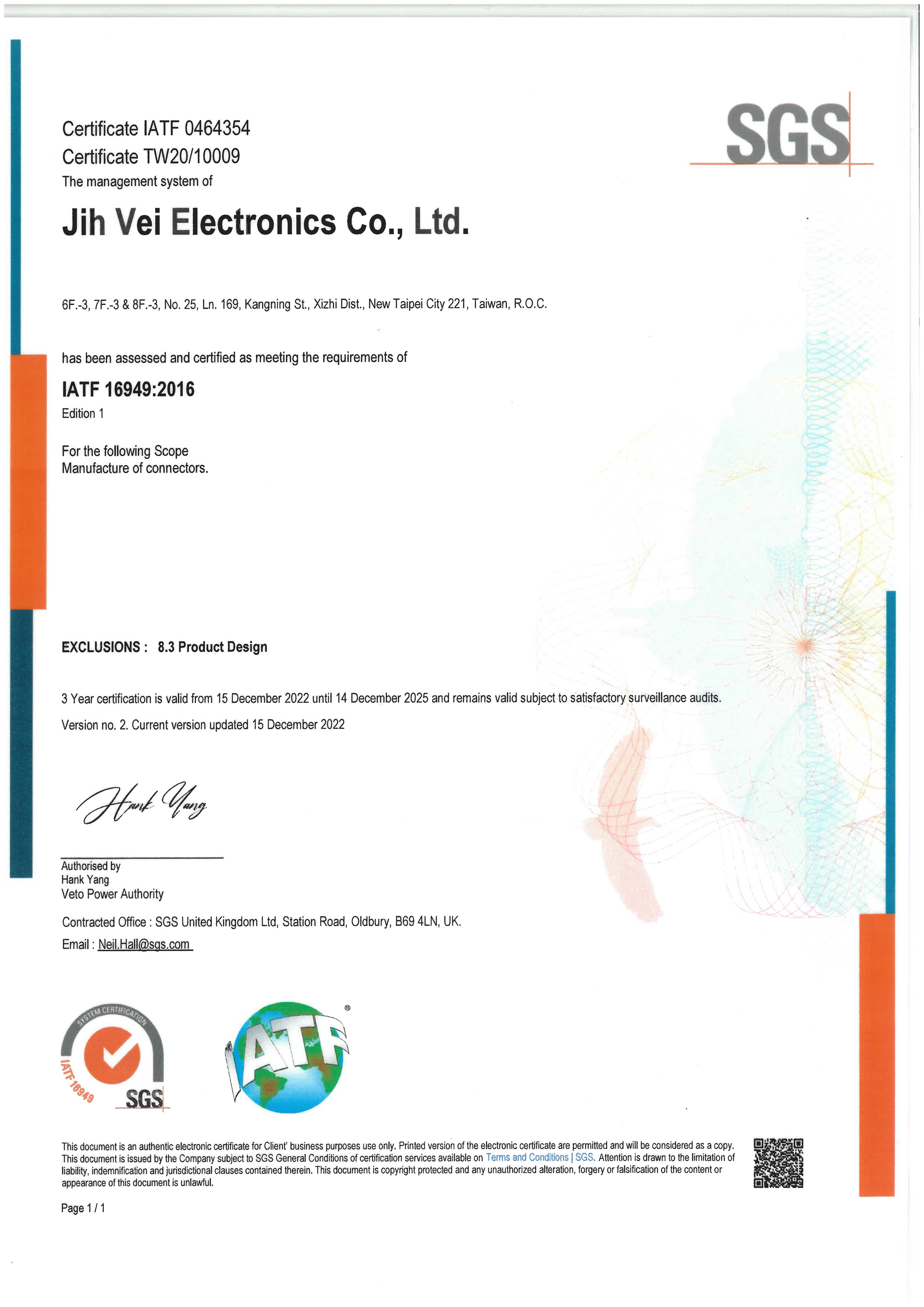 通過SGS公司驗証的TS16949:2009車用行業品質管理體系