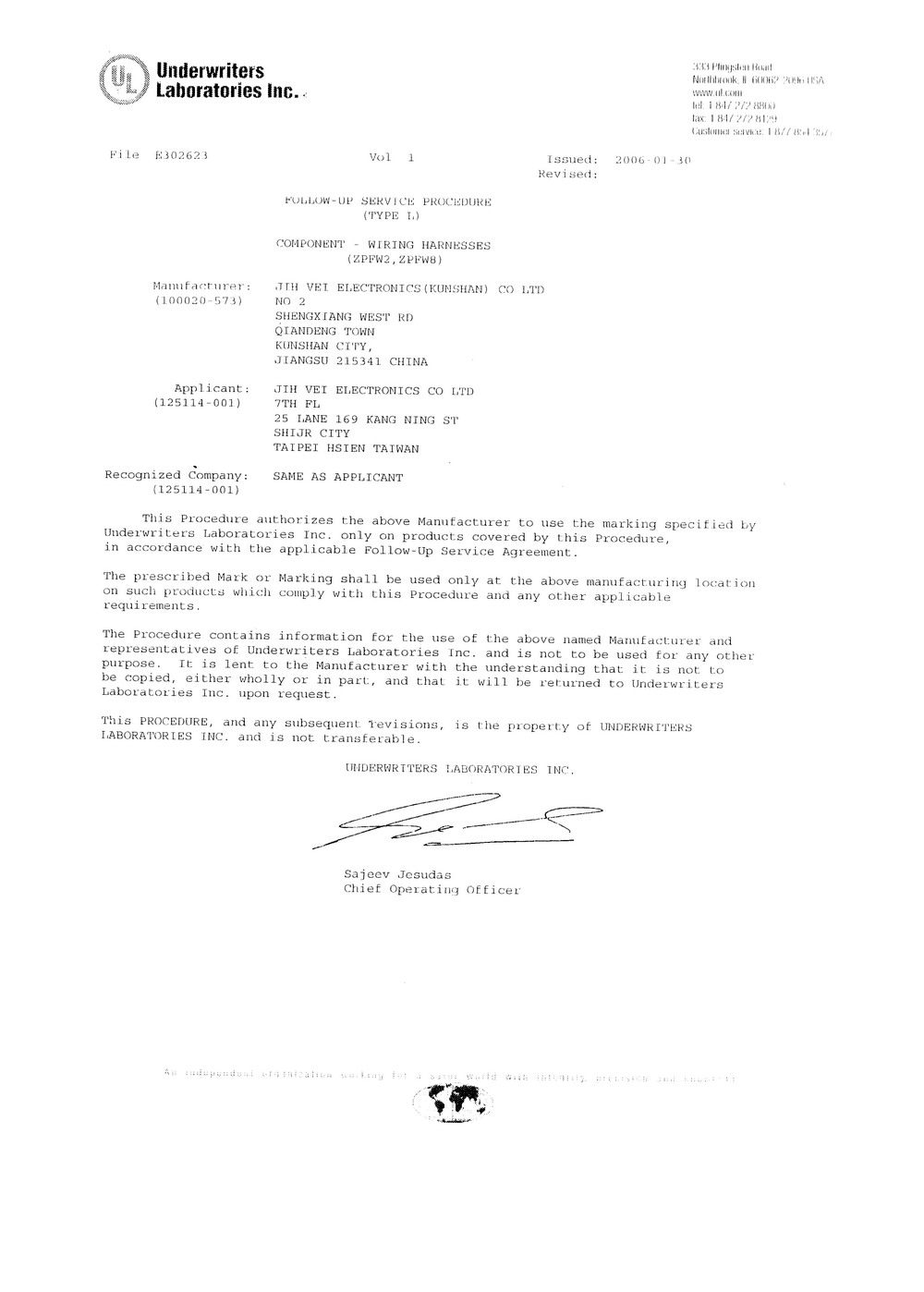昆山UL-E302623證書